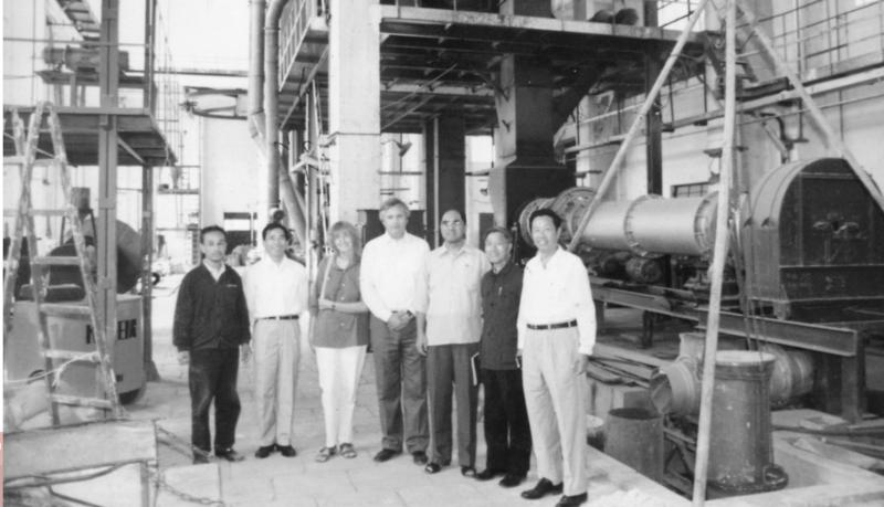1989年,合肥院首臺(tái)自主開發(fā)的HRM1250原料立式磨成功投運(yùn),各項(xiàng)技術(shù)指標(biāo)達(dá)到或超過(guò)設(shè)計(jì)要求,填補(bǔ)國(guó)內(nèi)空白。該成果于1993年通過(guò)建材行業(yè)部級(jí)鑒定,達(dá)到國(guó)際先進(jìn)水平,隨后榮獲“國(guó)家級(jí)新產(chǎn)品”、“國(guó)家優(yōu)秀節(jié)能科技成果”和國(guó)家建筑材料工業(yè)局建材行業(yè)部級(jí)科技進(jìn)步二等獎(jiǎng)等一系列榮譽(yù)獎(jiǎng)勵(lì)。圖為技術(shù)人員與院領(lǐng)導(dǎo)在該臺(tái)立式磨前合影