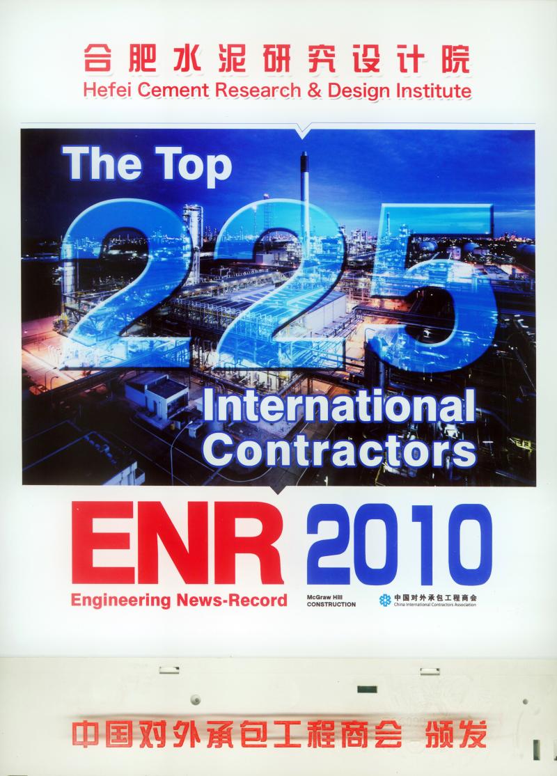 2009年9月5日,美國(guó)麥格勞·希爾建筑信息公司(McGraw-Hill)在其官方網(wǎng)站發(fā)布了2009年度Engineering News-Record(簡(jiǎn)稱“ENR”)全球最大225家國(guó)際承包商排名。我國(guó)內(nèi)地共有50家企業(yè)榜上有名,合肥院位列第145位,在中國(guó)企業(yè)中位列第29位。該榜單自開評(píng)以來一直未有設(shè)計(jì)咨詢類企業(yè)入選,合肥院開創(chuàng)了先例。