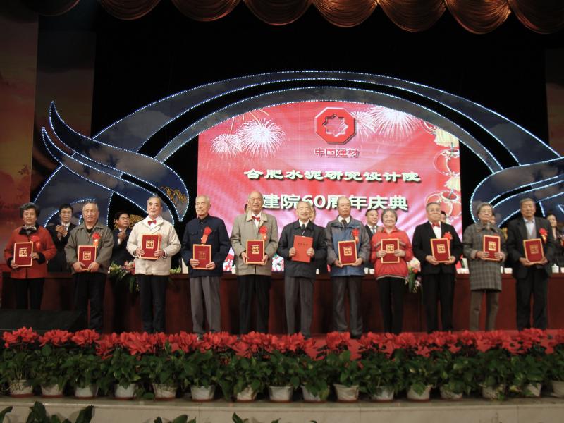 2010年10月30日,為慶祝建院60周年,合肥院舉行了盛大的慶典大會,并邀請了集團和行業(yè)內(nèi)多位領(lǐng)導(dǎo)蒞臨參會。上圖為建材聯(lián)合會喬龍德會長、中建材集團宋志平董事長參觀合肥院產(chǎn)業(yè)園;下圖為在慶典大會上,為表彰在合肥院60年的發(fā)展歷程中嘔心瀝血,做出無私奉獻的老同志,大會為42位50年以上院齡的老同志頒發(fā)了榮譽證書。