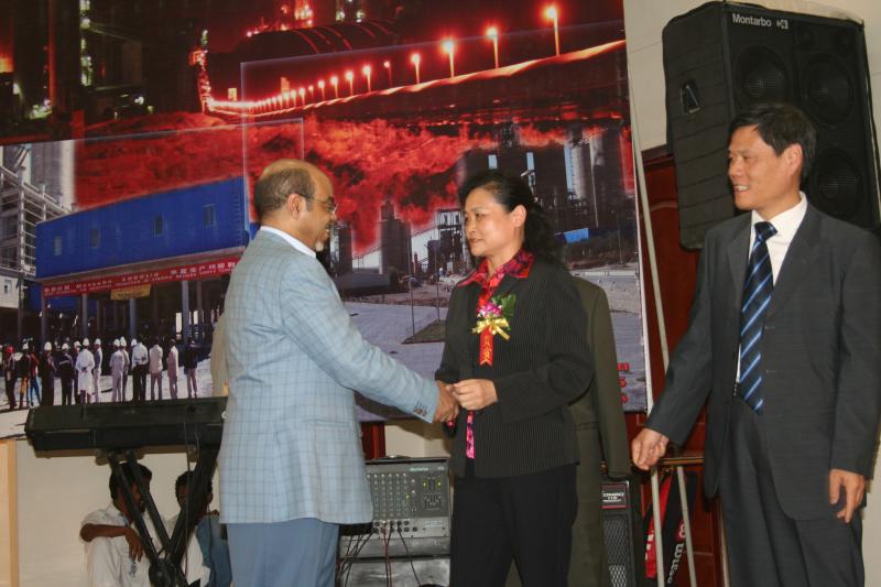 2011年6月25日,在合肥院總承包的埃塞俄比亞Messebo水泥廠竣工典禮上,埃塞總理梅勒斯與建材總院總經(jīng)理姚燕親切握手。合肥院在非洲市場承接多個水泥生產(chǎn)線項目,廣受客戶好評。
