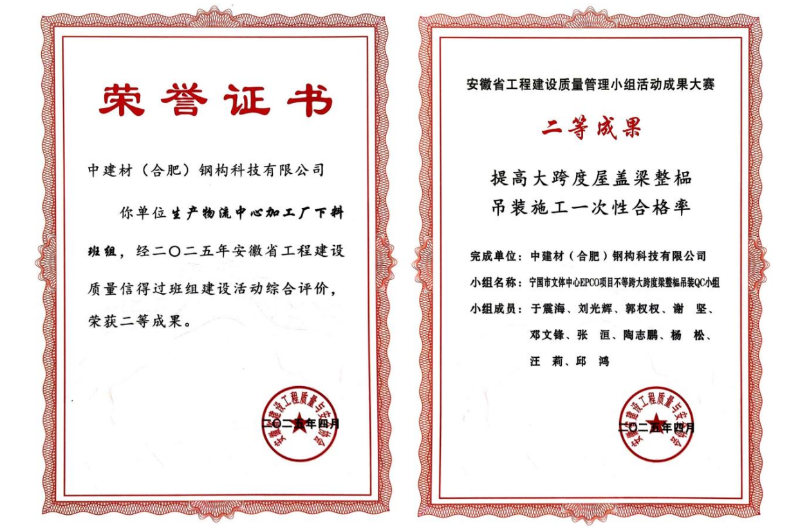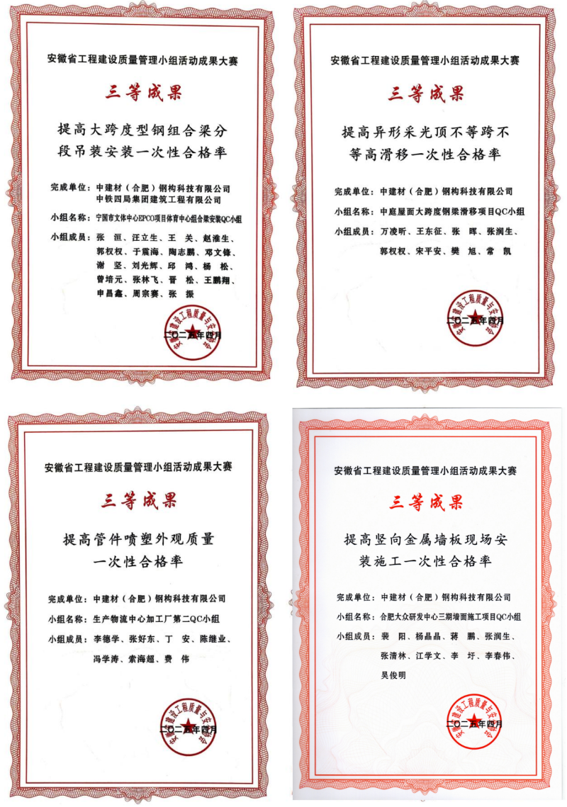 近日,在安徽省工程建設(shè)質(zhì)量管理小組活動(dòng)成果大賽上,中建材鋼構(gòu)公司憑借扎實(shí)的技術(shù)功底、卓越的質(zhì)量管理水平和持續(xù)的創(chuàng)新精神,一舉斬獲10項(xiàng)優(yōu)秀成果大獎(jiǎng)!其中包括2項(xiàng)二等獎(jiǎng)、8項(xiàng)三等獎(jiǎng),獲獎(jiǎng)數(shù)量和質(zhì)量均位居行業(yè)前列,充分展現(xiàn)了中建材鋼構(gòu)公司在工程建設(shè)領(lǐng)域強(qiáng)大的綜合實(shí)力和核心競(jìng)爭(zhēng)力。